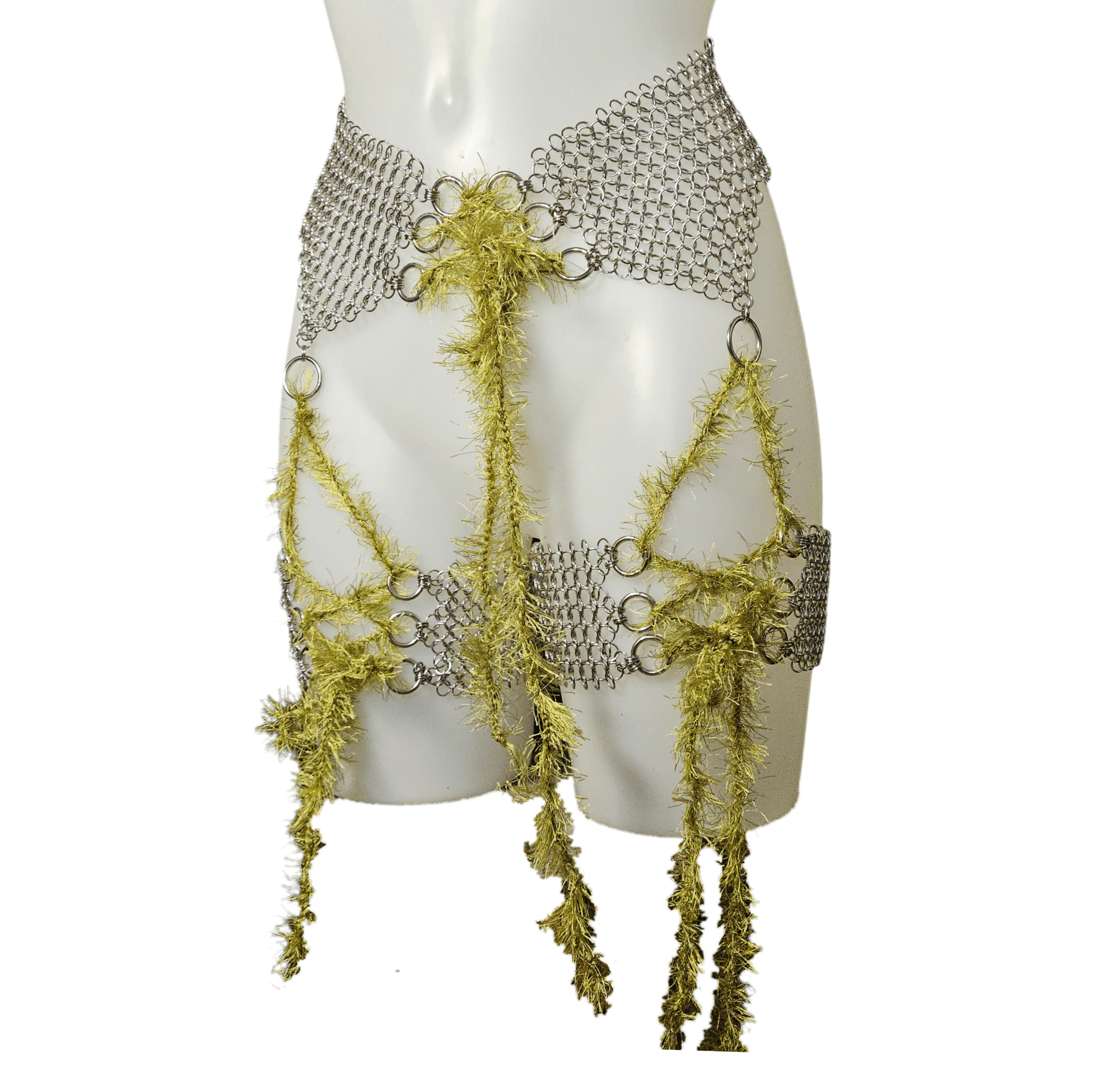 handmade with polyester yarn, handwoven chainmaille and stainless steel components ☆ one of a kind ☆ each of the seaweeds can be replaced with another ribbon