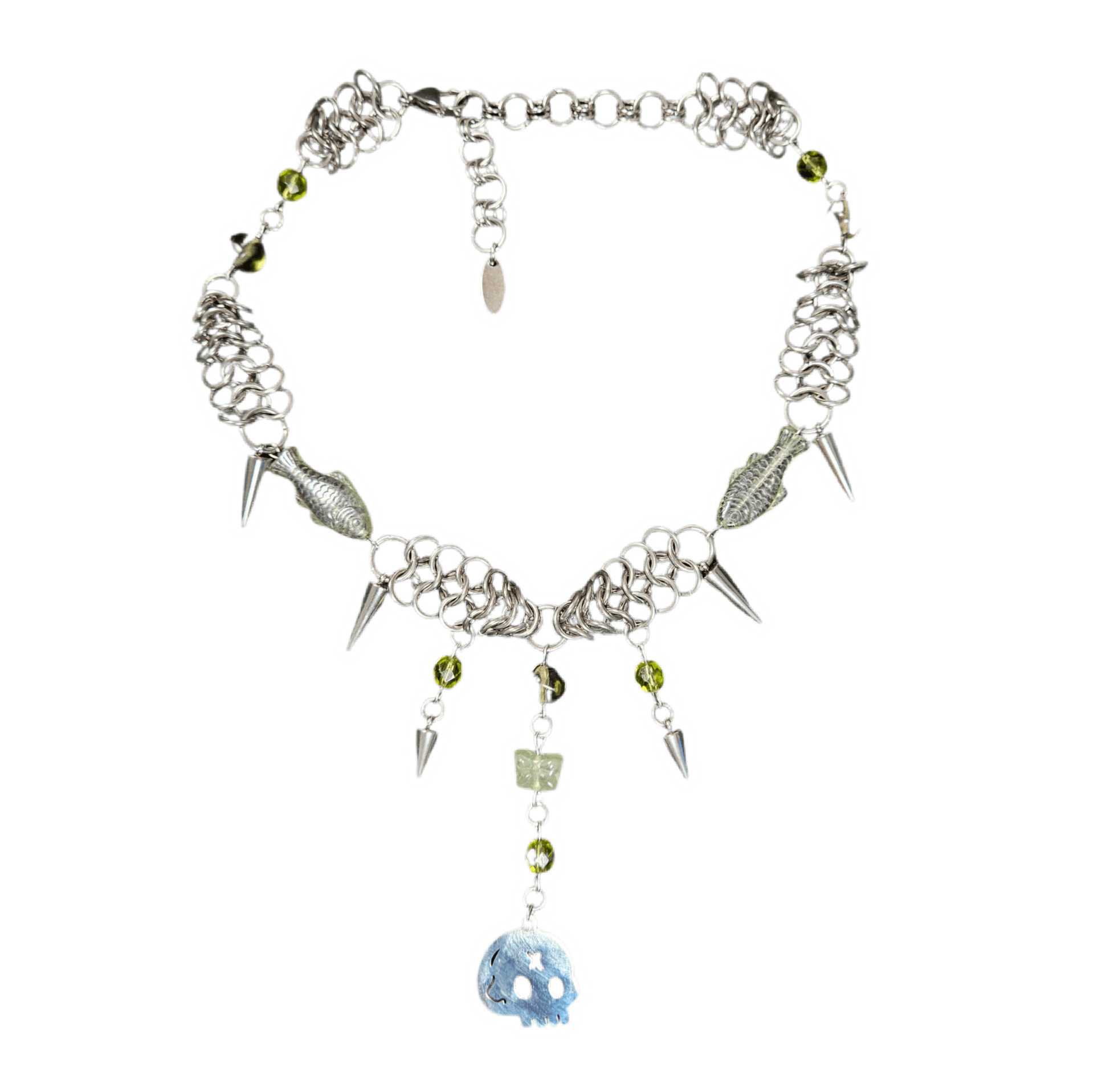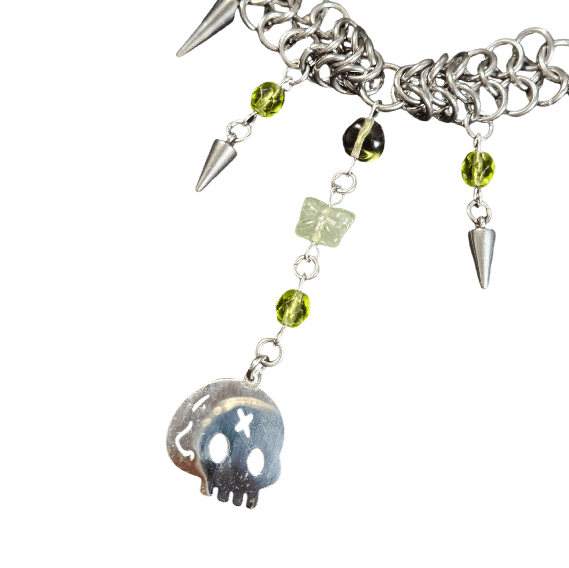handmade with glass beads, stainless steel charms, handwoven chainmaille and stainless steel components ☆ one of a kind ☆
