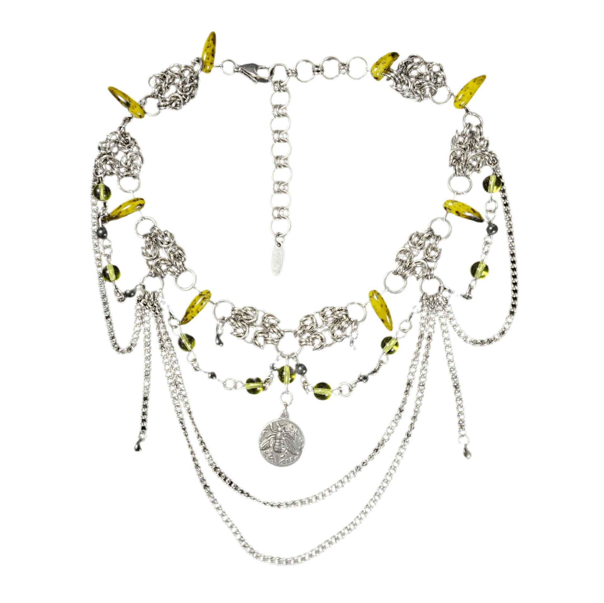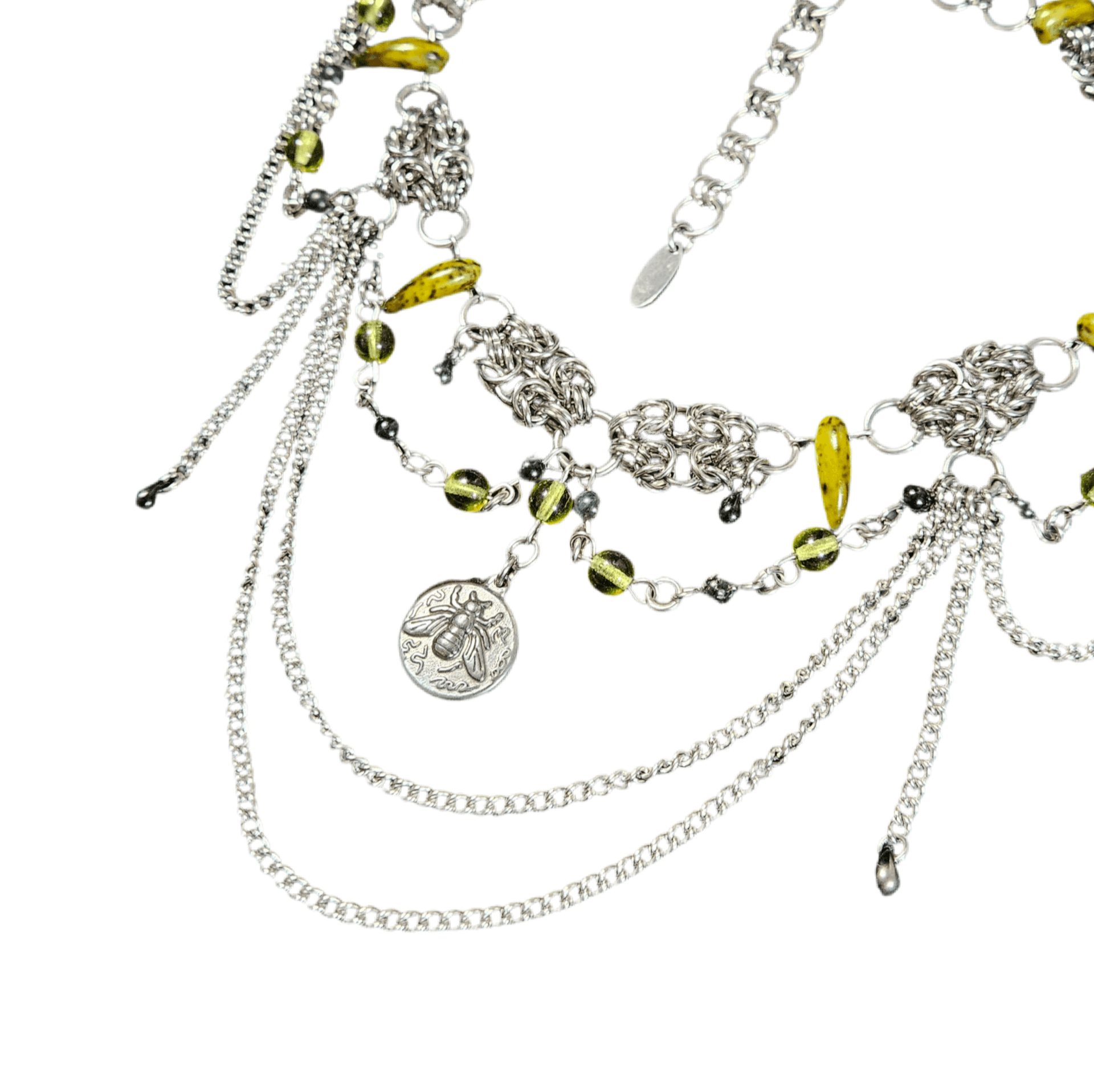 handmade with glass beads, stainless steel charms, handwoven chainmaille and stainless steel components ☆ one of a kind ☆