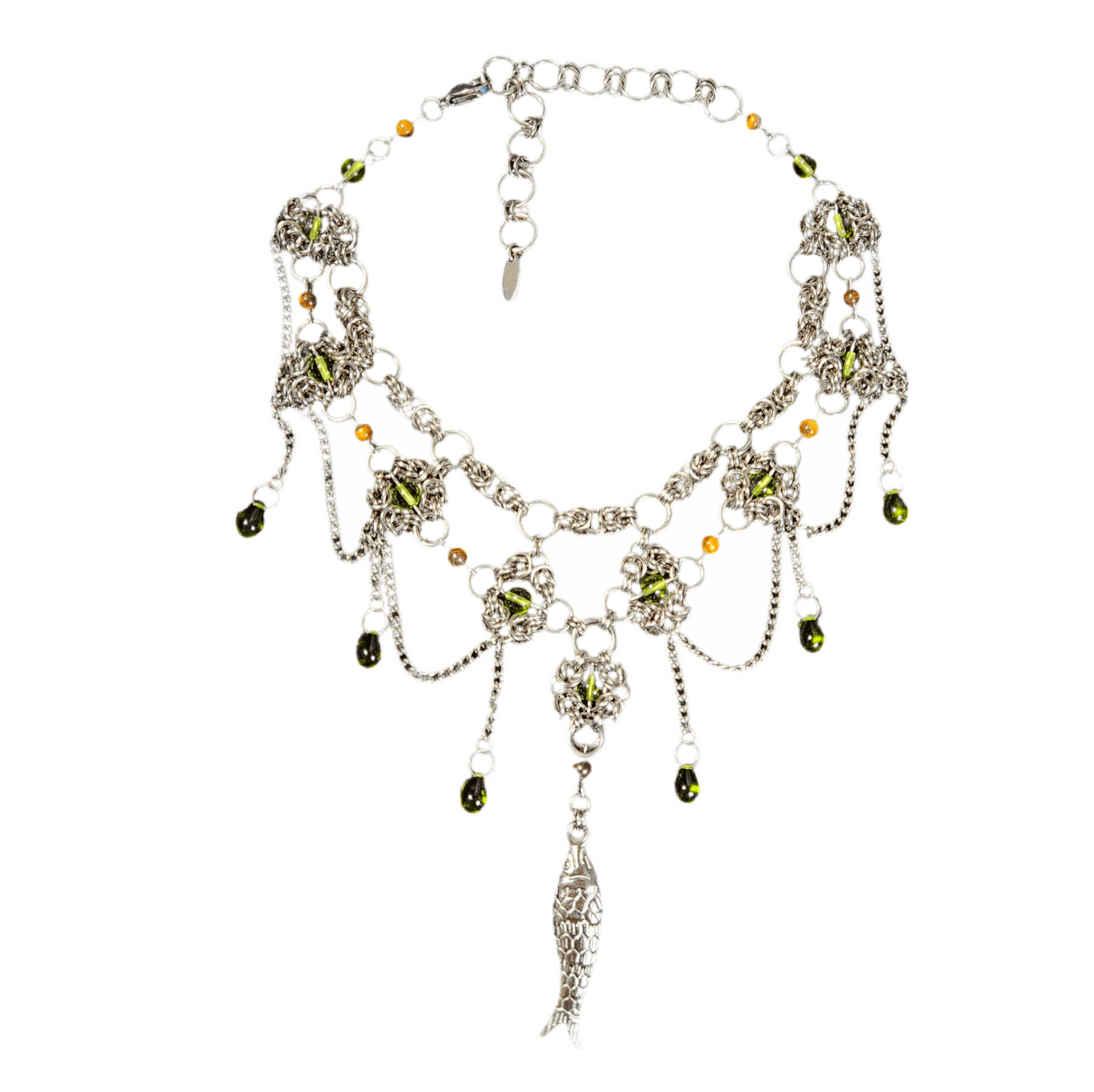 handmade with glass beads, stainless steel charms, handwoven chainmaille and stainless steel components ☆ one of a kind ☆